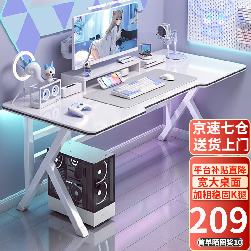 奥伦福特 电脑桌台式家用电竞游戏桌办公书桌简约书房写字桌子 简约白碳纤纹单桌-160*60 升级款电竞桌
