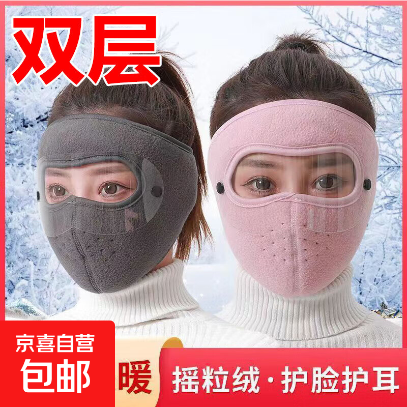 户外配饰瑶粒绒秋冬保暖防风防寒面罩男女户外骑行防尘面罩可水洗 防风面罩粉色【带镜片】 均码