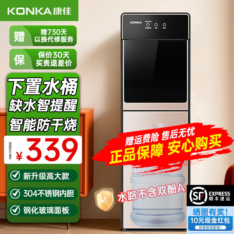 康佳(KONKA)饮水机家用下置式桶装水温热型/冷热型快速加热一体机2025新款下置水桶饮水器 【升级旗舰】升级加高加厚童锁双门防尘 制冷制热型