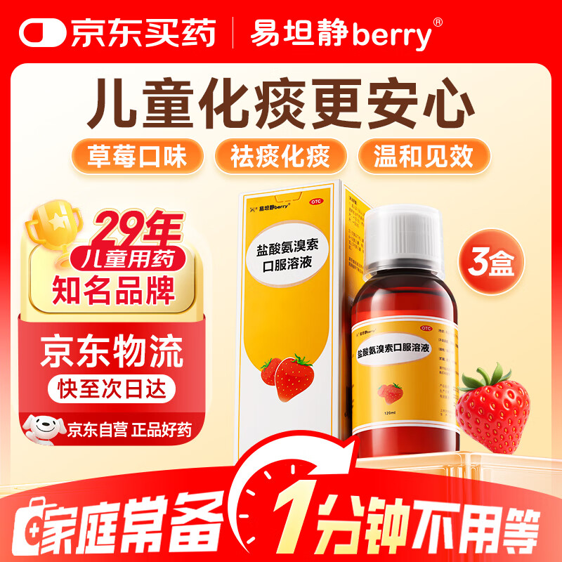 【3瓶】易坦静 盐酸氨溴索口服溶液3mg/ml*120ml 支气管炎 用于急、慢性支气管炎引起的痰液粘稠感冒咳嗽