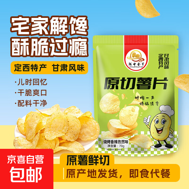 甘肃定西土豆马铃薯鲜切薯片 洋芋原切休闲零食麻辣香辣原味番茄 70g*6袋-烧烤香辣孜然味