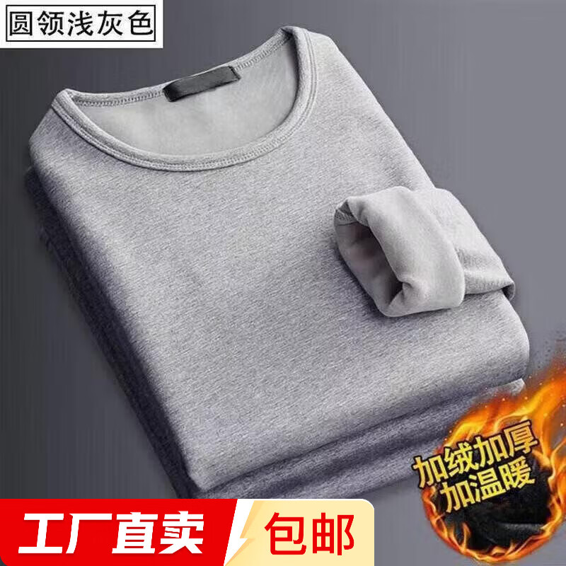 男秋冬加厚保暖内衣秋冬季内搭秋衣内衣长袖圆领t恤加绒打底衫 浅灰色 3XL