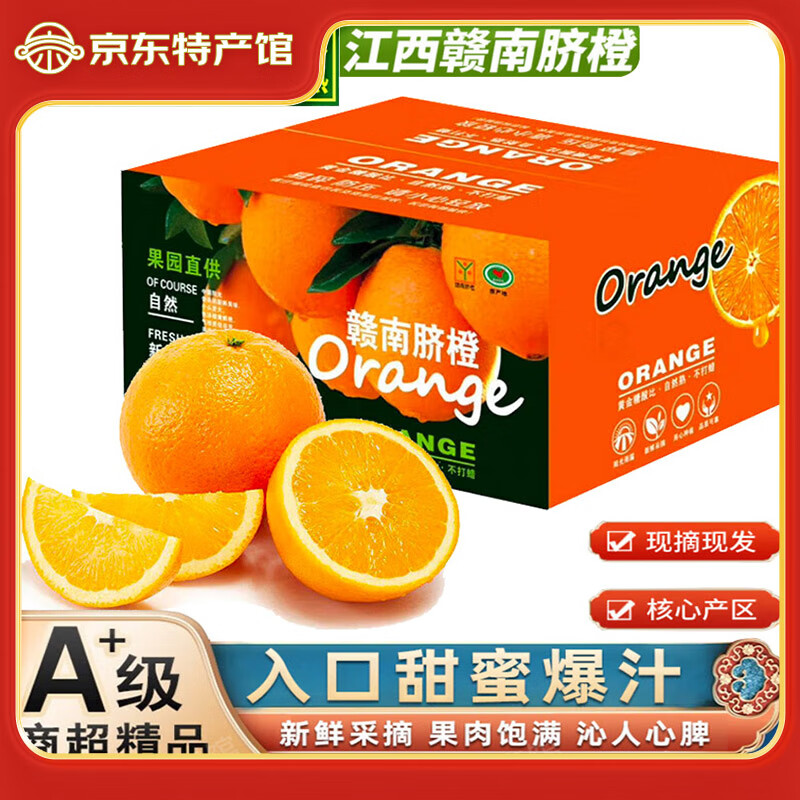 集年鲜赣南脐橙手剥甜橙子新鲜现摘生鲜水果整箱节日送礼 净重9斤铂金果彩箱 单果150-220g