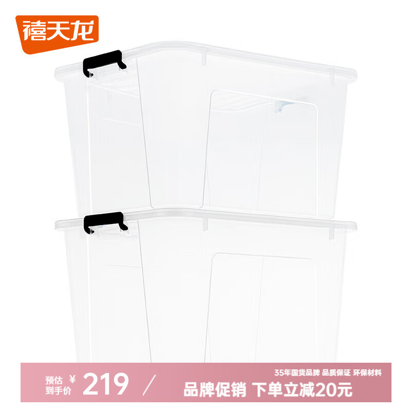 禧天龙(Citylong)特大号透明塑料收纳箱搬家整理储物箱置物箱 【78*56*46】145升六轮两个装