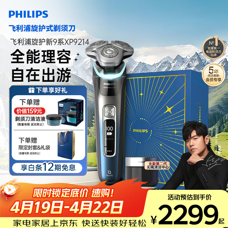 飞利浦电动剃须刀全新一代旋护新9系Pro昼夜焕新限定款 -0.08mm皮下净剃三合一按摩刷 生日礼物送父亲