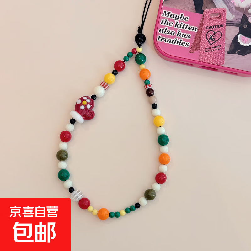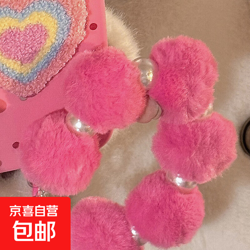 彩色毛绒手绳美拉德色系手机壳挂链适用手机绳便携手腕带绳手提可爱个性防丢手机链手珠 五彩圆珠绳