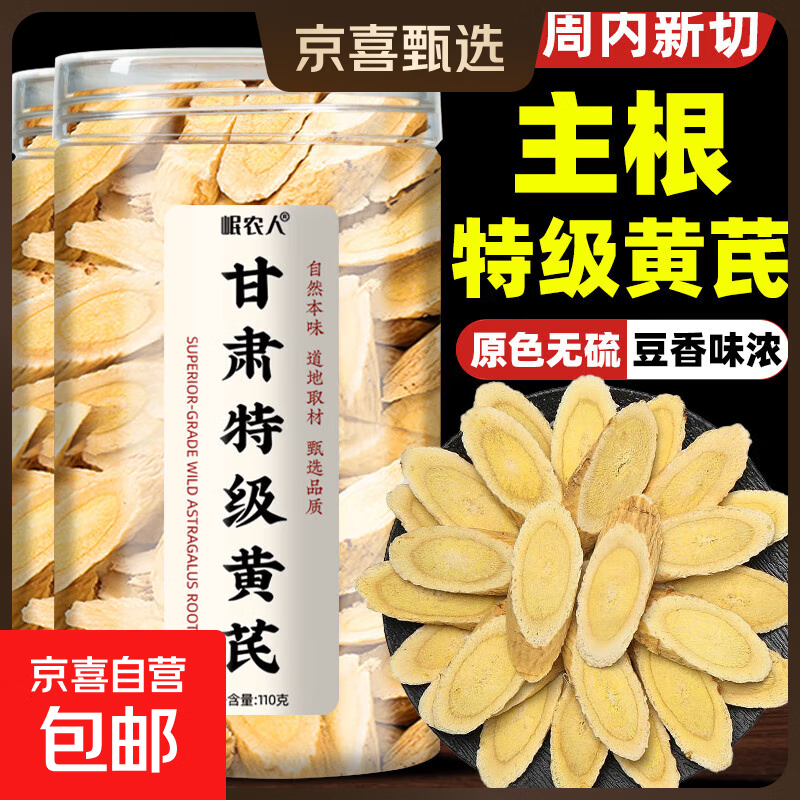 岷农人黄芪正宗甘肃岷县滋补煲汤泡水无硫熏黄芪片补气养血 【12mm特大片】黄芪110克*2罐