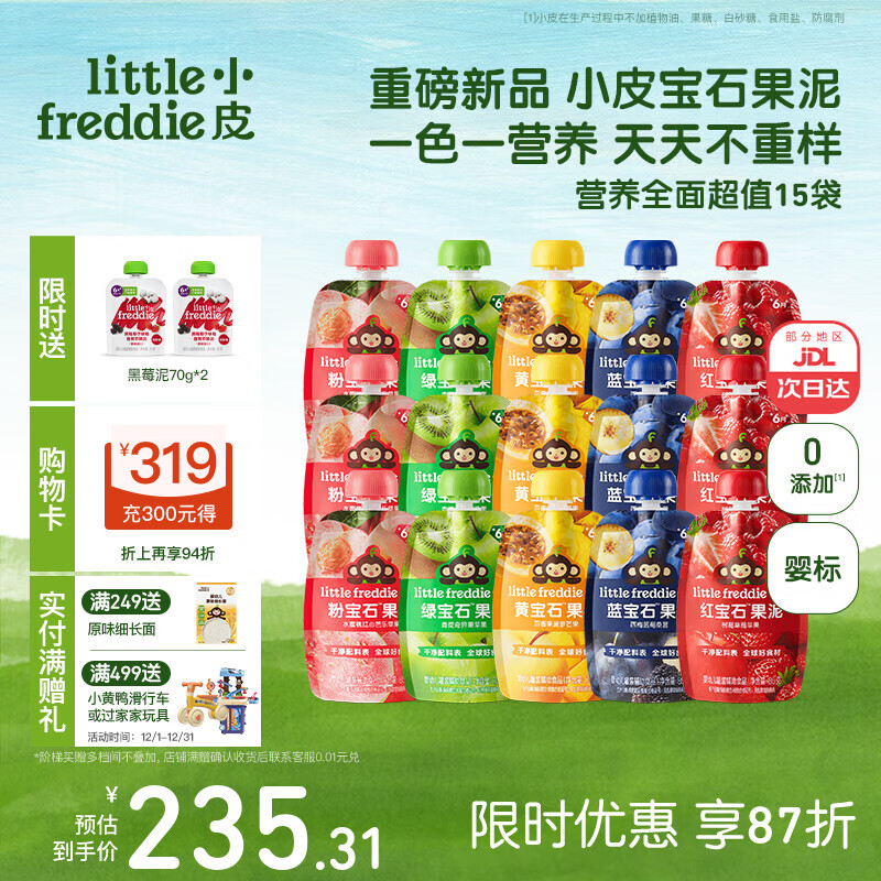 小皮(Little Freddie)果泥婴儿宝宝水果泥宝石果泥西梅泥 无添加糖盐果泥婴儿6个月以上 【重磅新品宝石果泥】2周营养全面超值装 85g*15袋 6月+