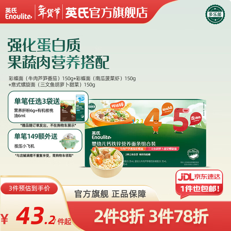 英氏(Engnice)【宝宝面条专区】婴幼儿有机面条辅食儿童意面碎碎面蝴蝶面 3阶钙铁锌面条(西红柿鸡蛋)200g