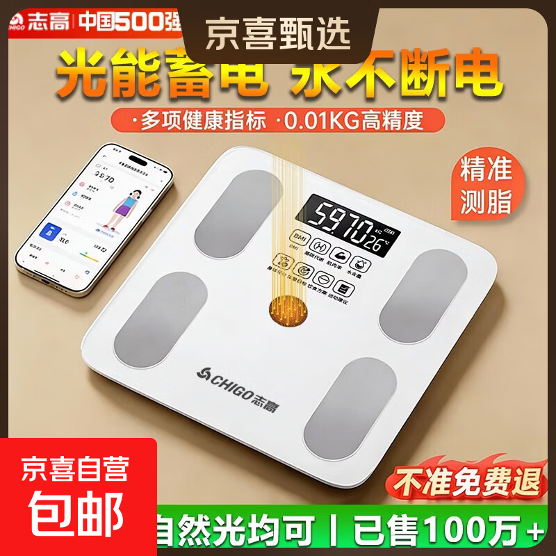 志高(CHIGO)体重秤电子秤体脂秤人体秤家用健康秤高精度称重精准LCD高清屏幕可称360斤 【光能充电】志高智能体脂秤