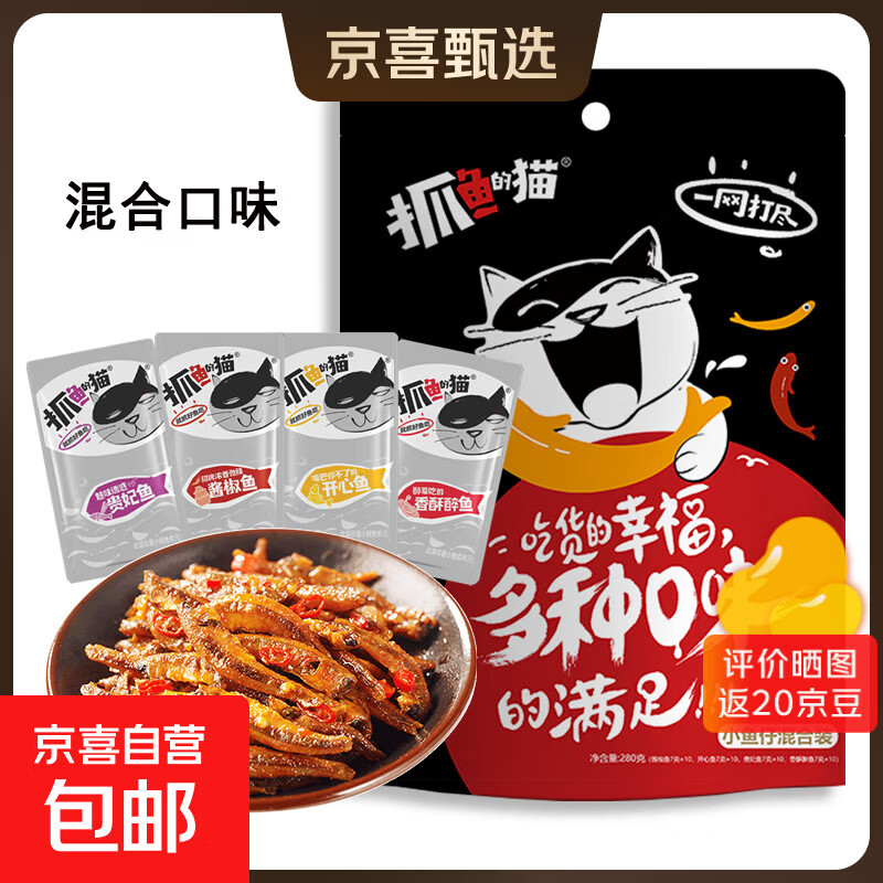 抓鱼的猫 香辣鱼仔鱼干休闲零食特产开袋即食 7g/袋 混合口味 40包