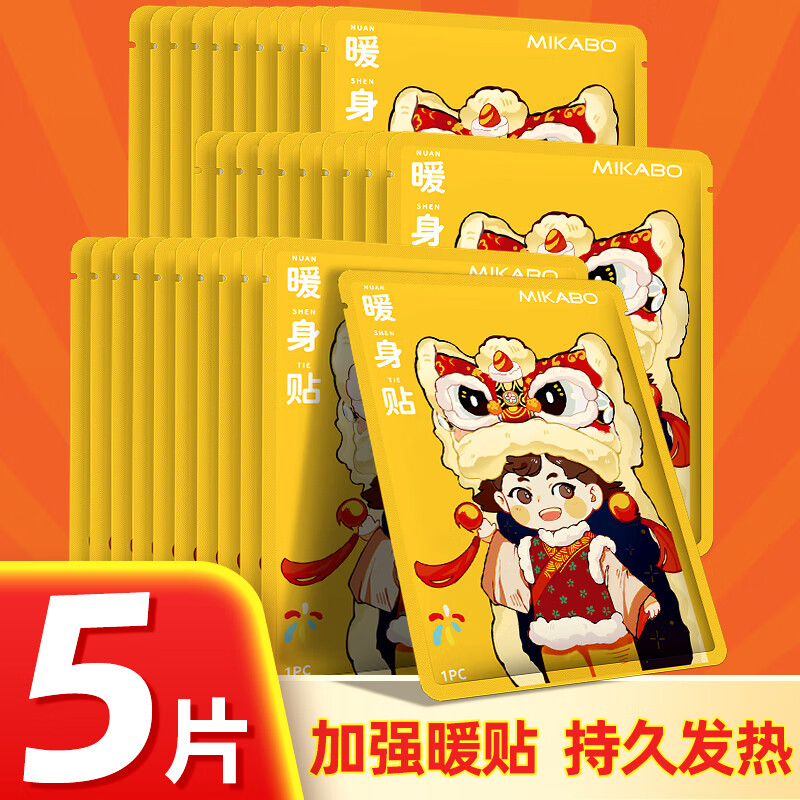 米卡博暖宝宝贴暖身贴暖腰腹关节自发热大姨妈保宫暖女生生理经期 5片装【黄色舞狮】发热持久