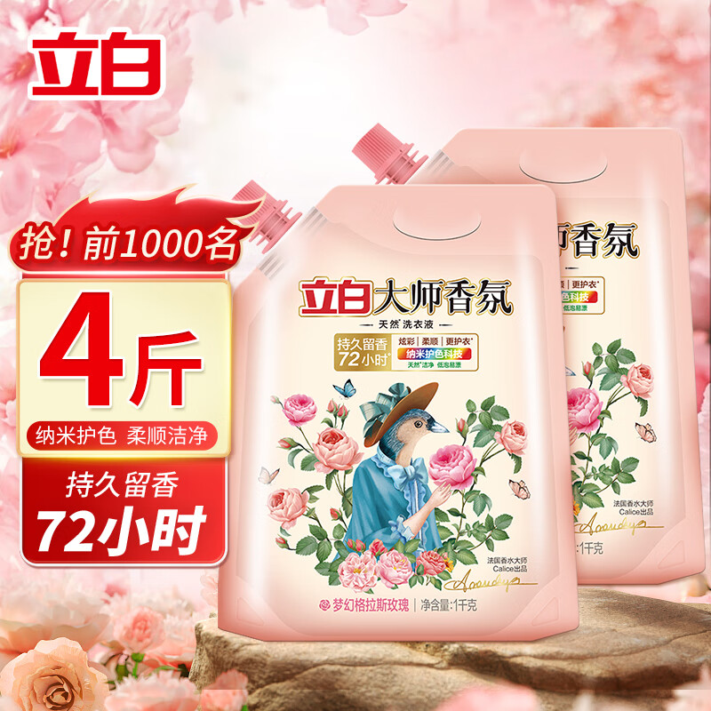 立白大师香氛香水洗衣液持久留香护衣护色柔顺洁净带导流嘴原装补充装 【梦幻玫瑰】 1kg*2袋 大师香氛液