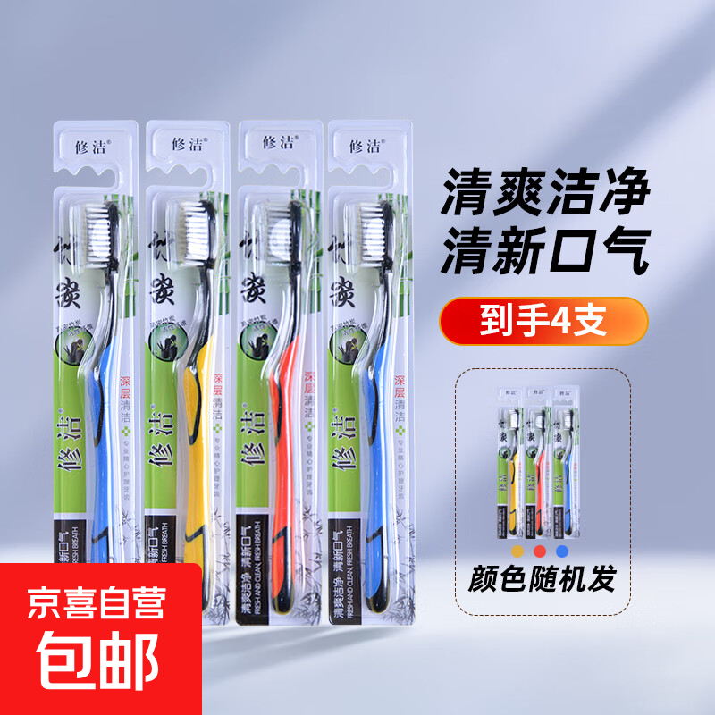 【全网爆款】牙刷牙线牙签软毛护龈家庭便携清洁男女士通用 大博士牙刷 4支 竹炭深洁