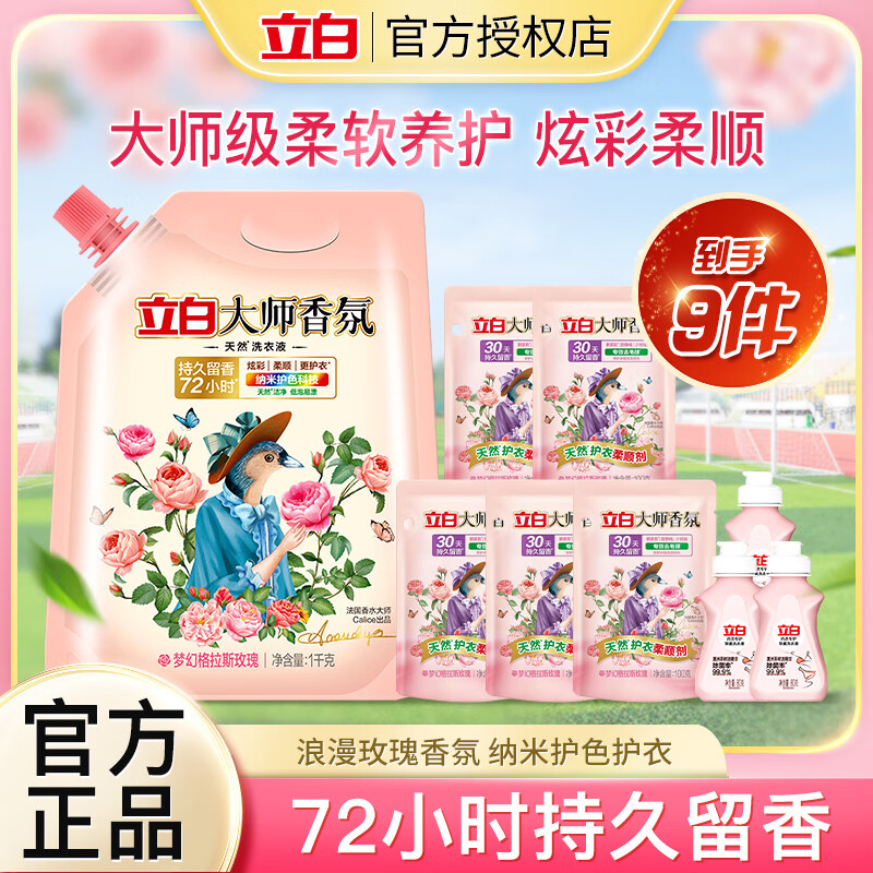 立白大师香氛香水洗衣液持久留香护衣护色柔顺洁净带导流嘴原装补充装 【9件】大师香氛 1kg*1袋 +5袋+3瓶