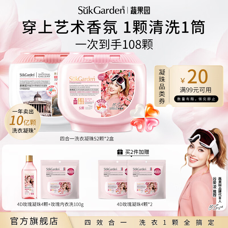 蔬果园四叶草香氛洗衣凝珠四合一除菌除螨持久留香柔顺洗衣液凝珠洗衣珠 【除菌留香】洗衣凝珠108颗