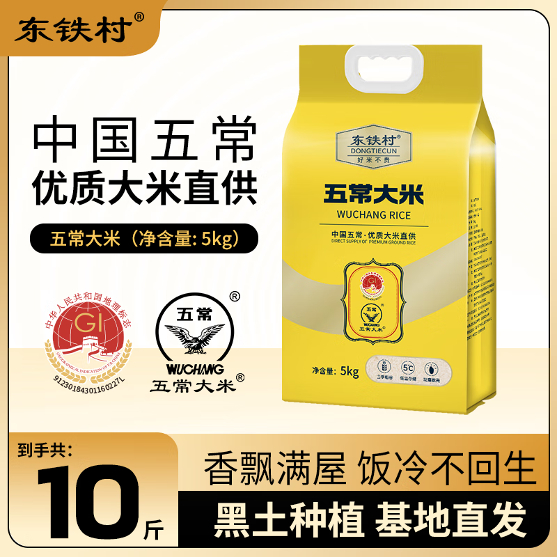 东铁村五常大米2025当季新米 寒地黑土种植 现磨现发 核心产区源头直发 10斤五常大米高端双层真空包装