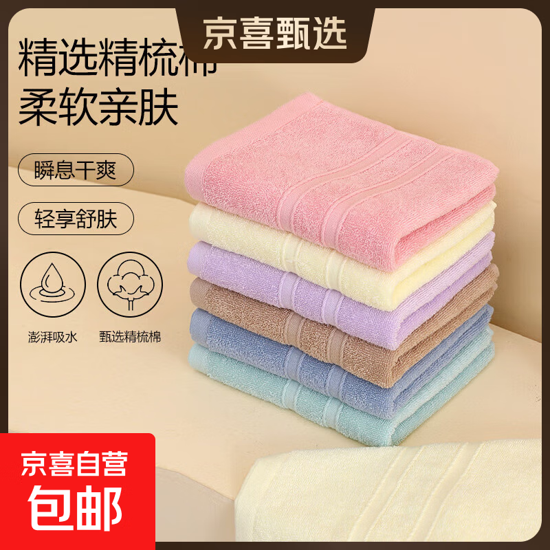 【洁丽雅同款】5A抗菌纯棉毛巾马卡龙色夏季运动毛巾情侣洗脸家用 5A抗菌面巾-不同颜色随机 5条