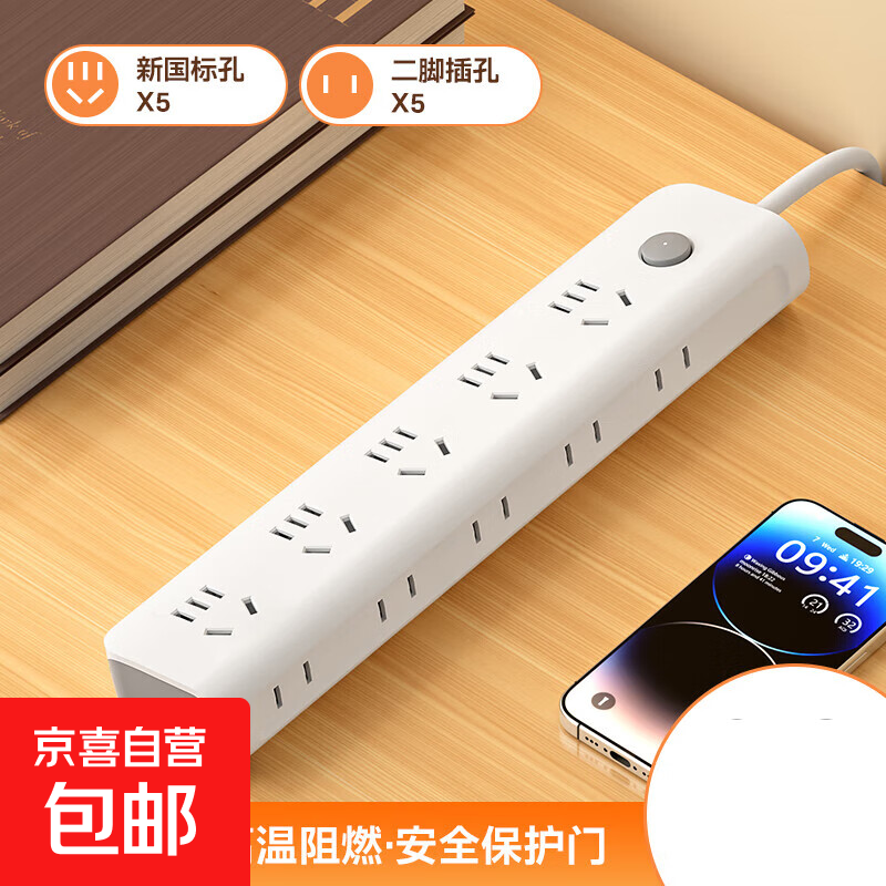 【京东物流】纯铜插座家用多功能USB快充插排插线板学生宿舍排插延长线插线板带线多功能接线板 5插位【总控开关】 全长4.8米