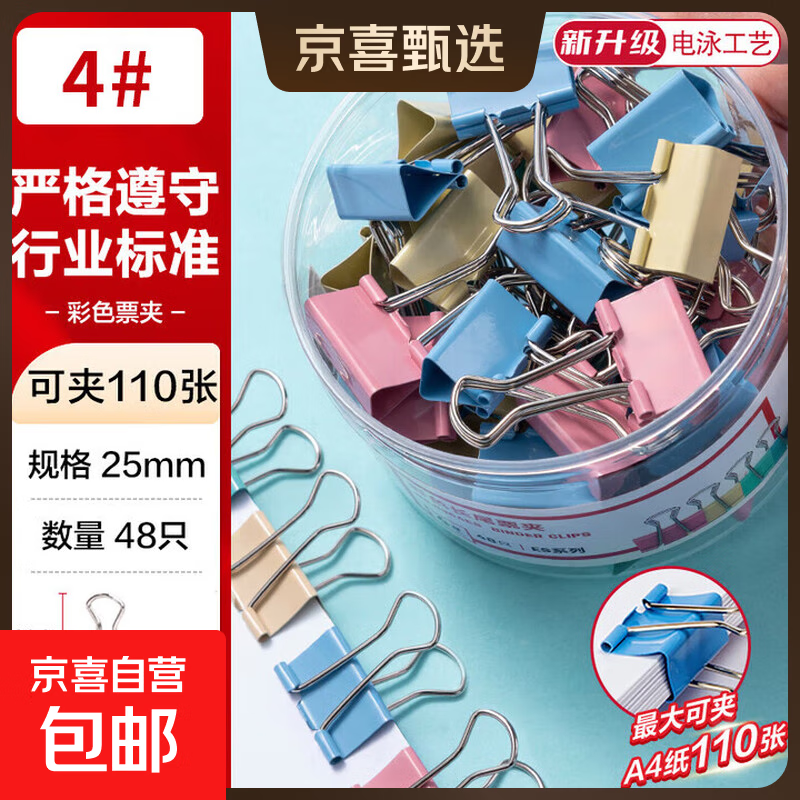 彩色长尾夹子办公用品票夹文件雁尾蝴蝶鱼尾票据凤尾文具固定书本纸张试卷资料大小号多功能收纳 25mm/共48个【彩色1桶装】