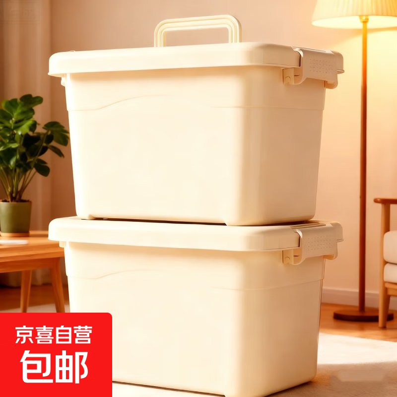 家用收纳箱高颜值客厅大容量衣服杂物整理储物防水防尘桌面收纳盒 家用收纳箱奶油风2个
