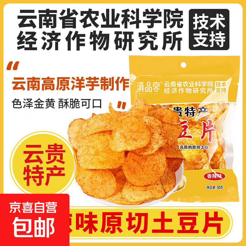 【云南特产】高原土豆片大包原切云南薯片洋芋丝麻辣零食 香辣味土豆片50g-5袋装