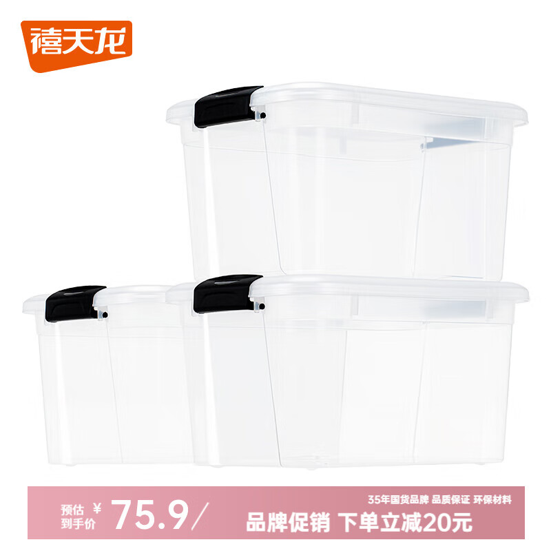禧天龙(Citylong)特大号透明塑料收纳箱搬家整理储物箱置物箱 【45*34*25】24升无轮三个装