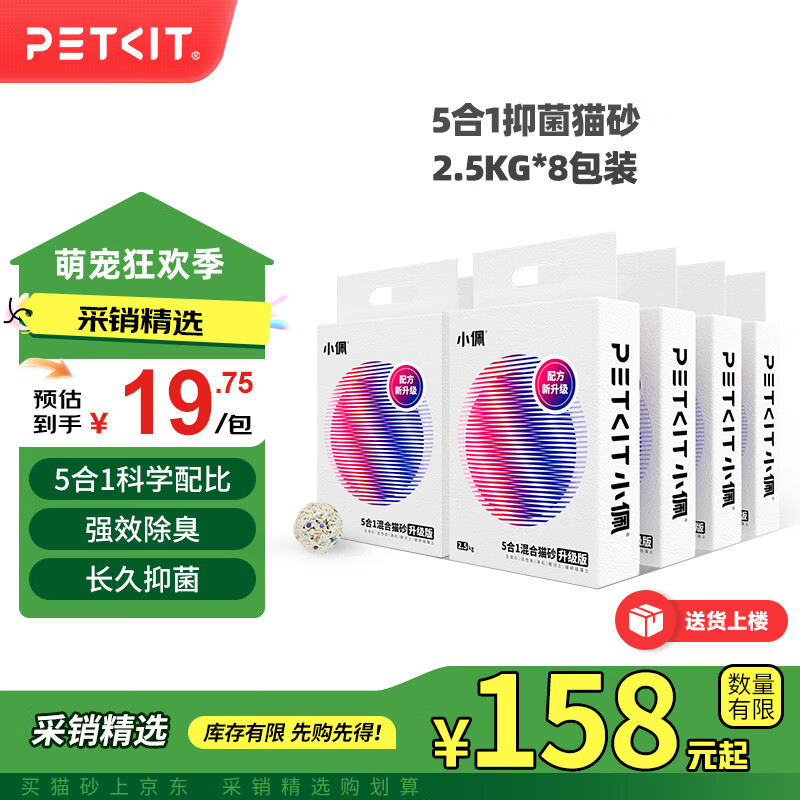 小佩五合一混合猫砂 活性炭豆腐混合 膨润土猫砂可冲厕所除臭 5合1升级砂 2.5kg*8包 规格