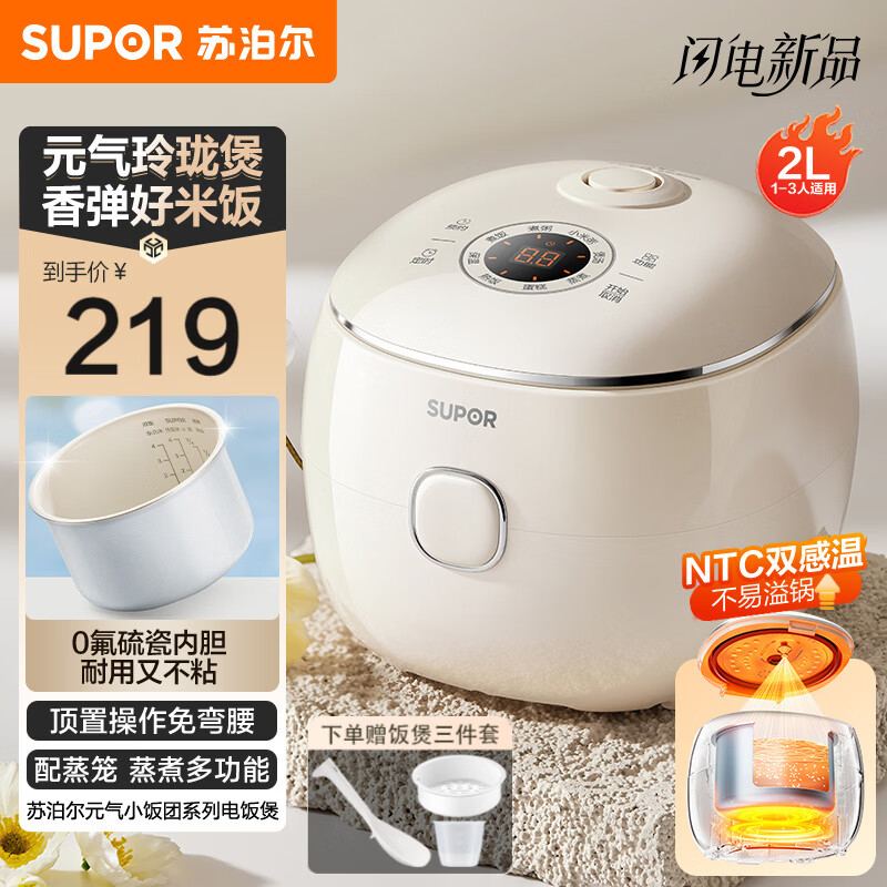 苏泊尔球釜电饭煲1-2-3人家用2升迷你小型多功能电饭锅微压焖煮香弹饭不粘内胆煮粥防溢锅智能预约 2L 奶油白【琉瓷内胆】