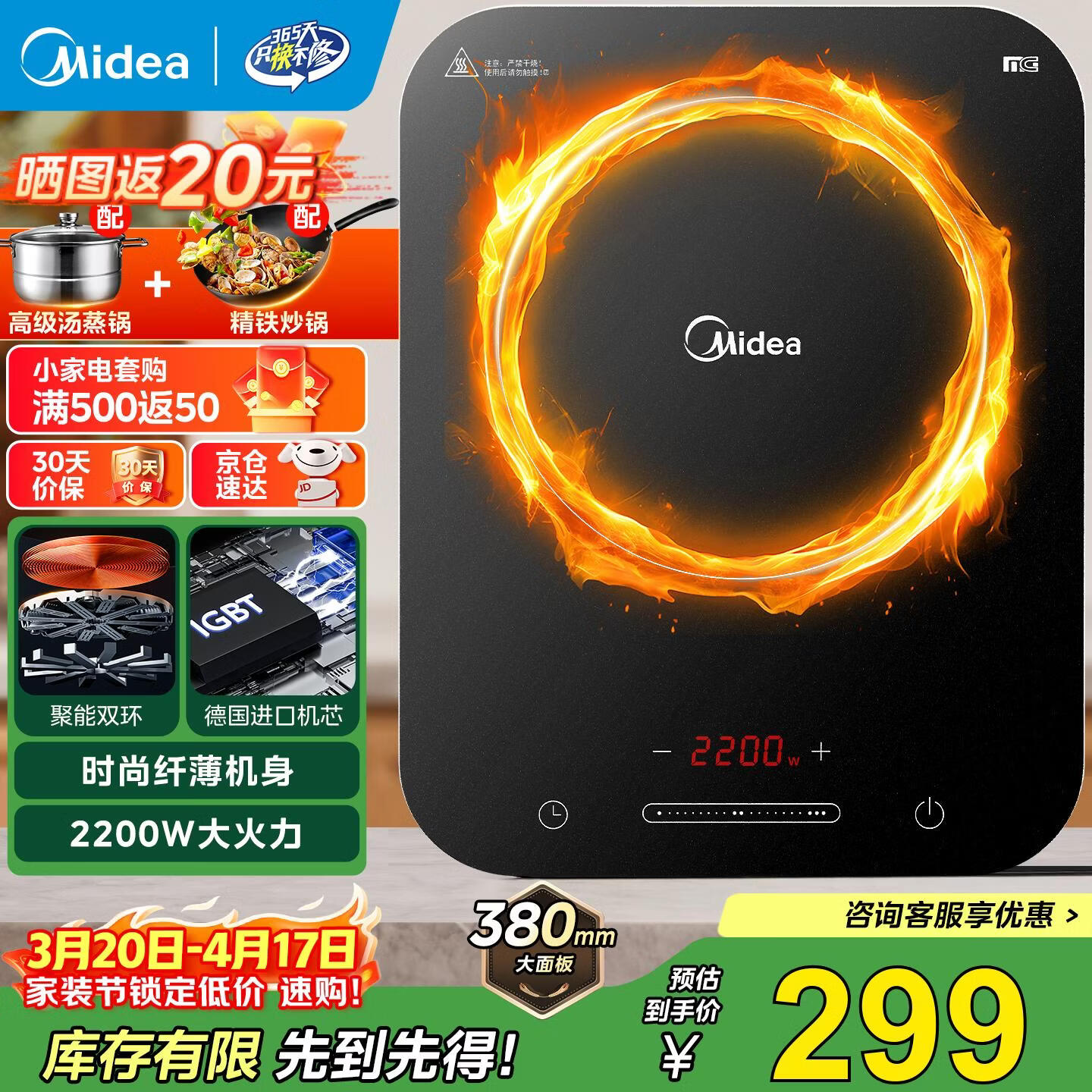 美的(Midea)电磁炉套装家用大功率2200W一键爆炒带锅电磁灶套装火锅电磁炉一体电炒锅 【单灶+双锅】持续加热