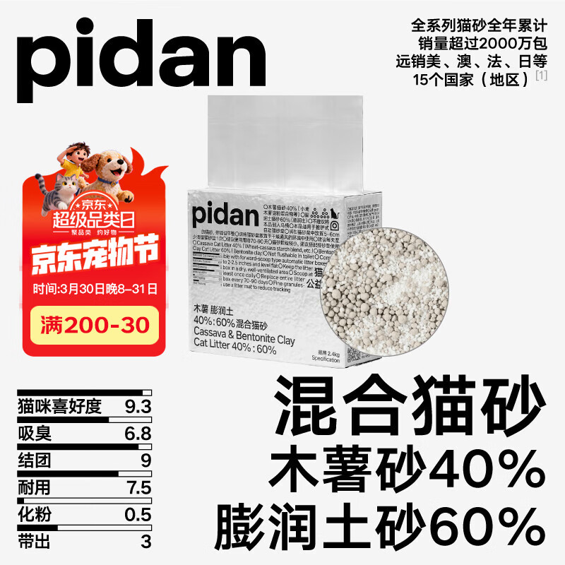 pidan猫砂 木薯猫砂混合膨润土猫砂 快速吸水易结团 单包试用