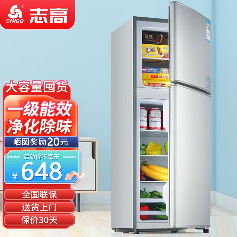 志高(CHIGO)双门冰箱家用小型一级能效办公室出租房宿舍用双开门中型二门电冰箱节能省电 一级能效-净味款172L【冷冻二层 冷藏四层】