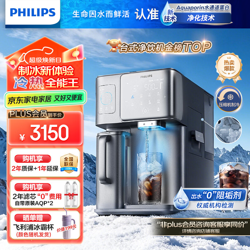 飞利浦(PHILIPS)冰块净水器家用冰境i1台式即热免安装净饮机加热直饮一体机饮水机直饮制冰机【重磅新品】ADD8600 ADD8604