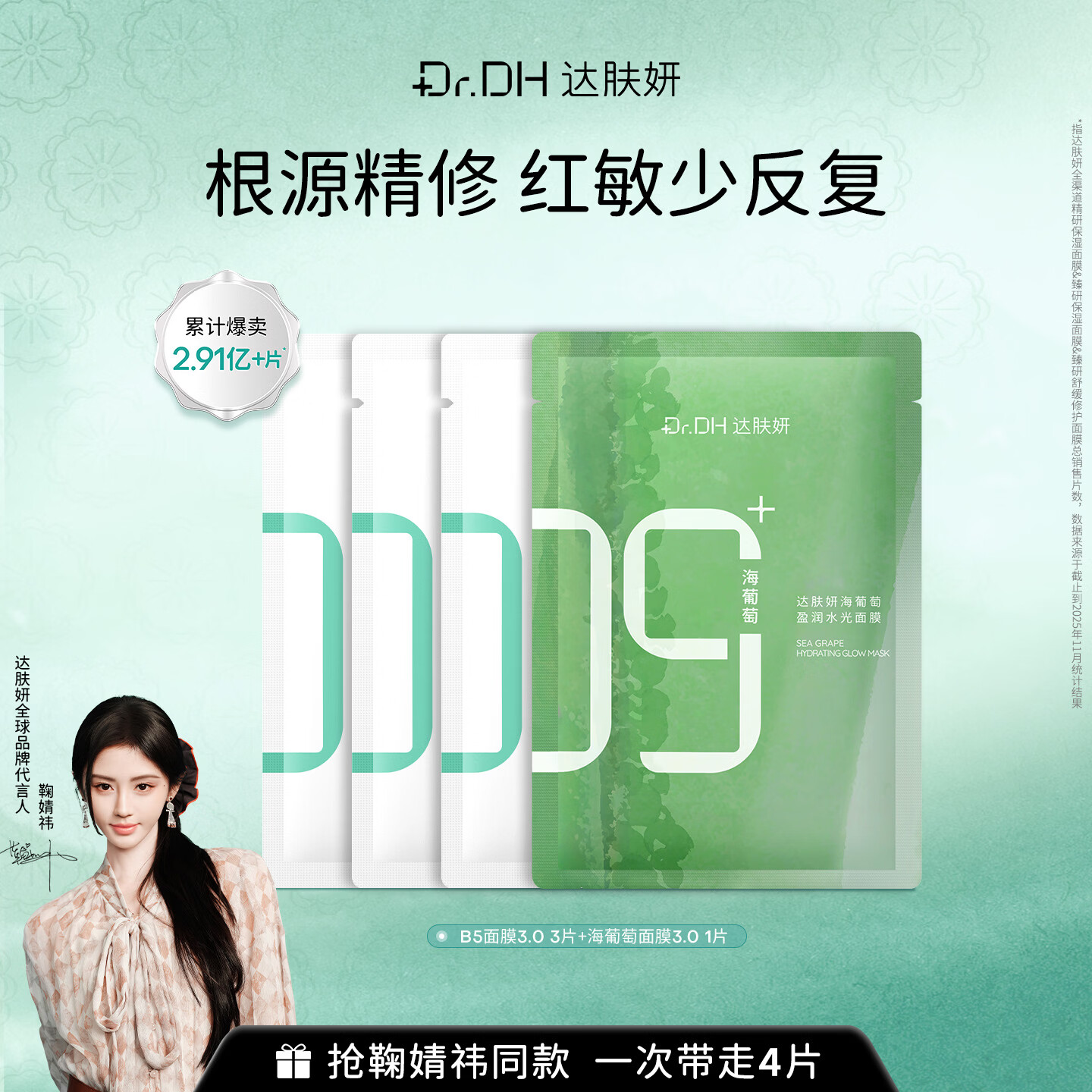 达肤妍海葡萄面膜面部保湿小分子玻尿酸补水修护舒缓润肤弹嫩 4片面膜体验装