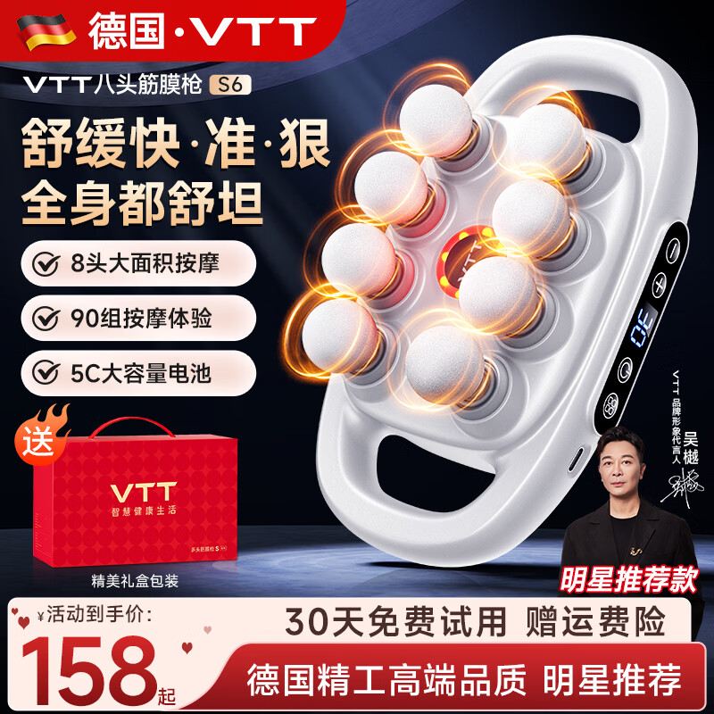 VTT【德国】十六头筋膜枪按摩器肩颈腰背全自动揉捏腿部全身深层肌肉电动颈膜小腿仪生日礼物送女生 【升级八头】30档+动力锂电池+德国品牌大电机白