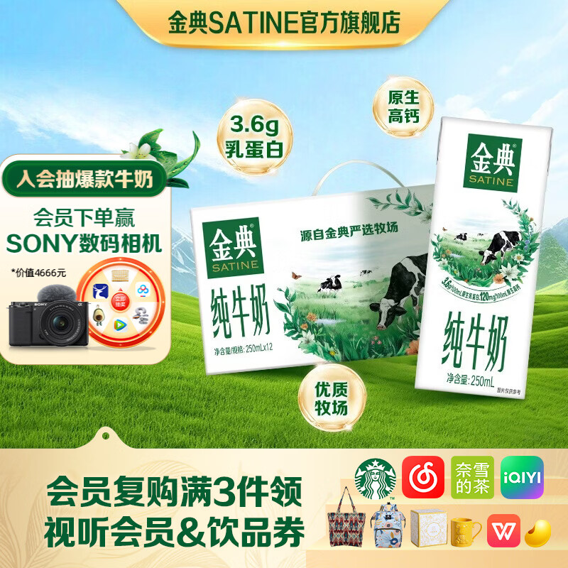 伊利金典纯牛奶 250ml纯牛奶 早餐伴侣 伊利牛奶整箱礼盒 金典纯牛奶250ml*12盒3月产