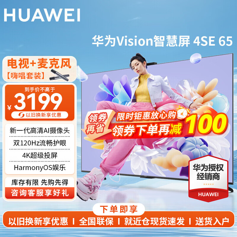 华为电视智慧屏 SE/5SE 43/55/65/75/85英寸 超级投屏4K超高清超薄全面屏 鸿鹄画质儿童教育电视机 65英寸 4 SE65智慧屏【麦克风K歌套装】