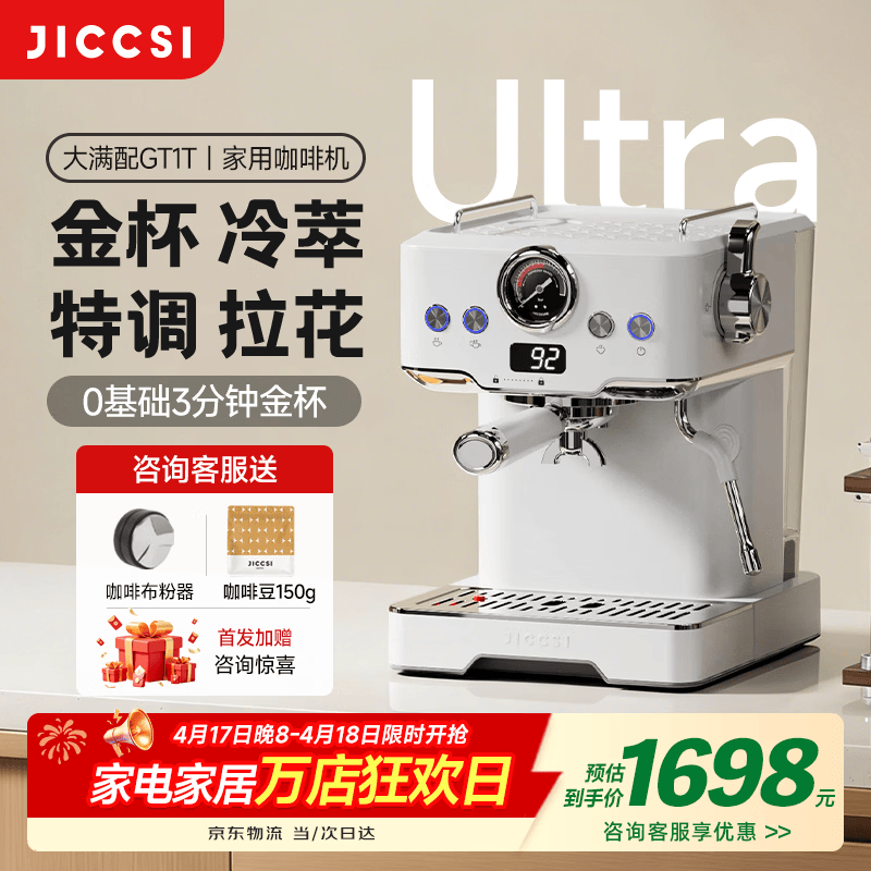 极萃师JICCSI大满配GT1T半自动家用小型咖啡机意式美式浓缩OPV冷萃热萃蒸汽打奶泡 【小白进阶】大满配GT1T