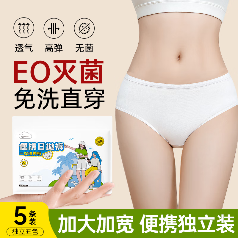 超亚EO灭菌一次性内裤女士独立装免洗孕产妇大码旅行出差户外日抛裤 5条便携独立装【EO灭菌型】 2XL[建议120斤-140斤]