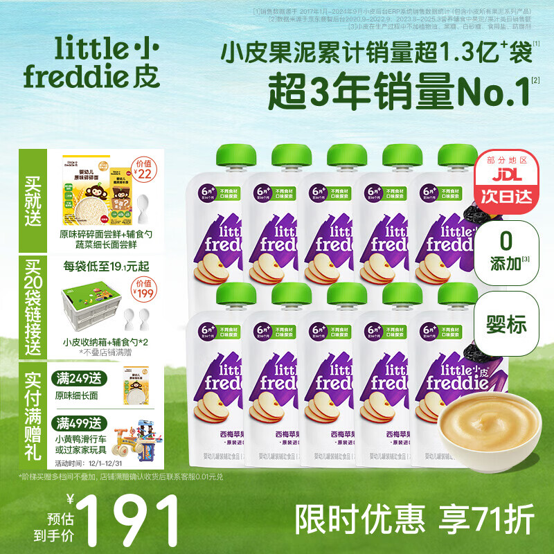 小皮(Little Freddie)果泥婴儿宝宝水果泥宝石果泥西梅泥 无添加糖盐果泥婴儿6个月以上 西梅苹果泥-助嗯嗯通畅 100g*10袋 6月+