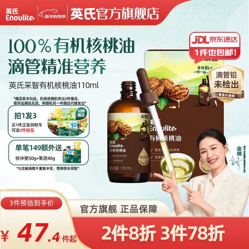 英氏采智有机核桃牛油果亚麻籽油儿童热炒凉拌食用油组合油 【第一口佐餐油】核桃油110ml