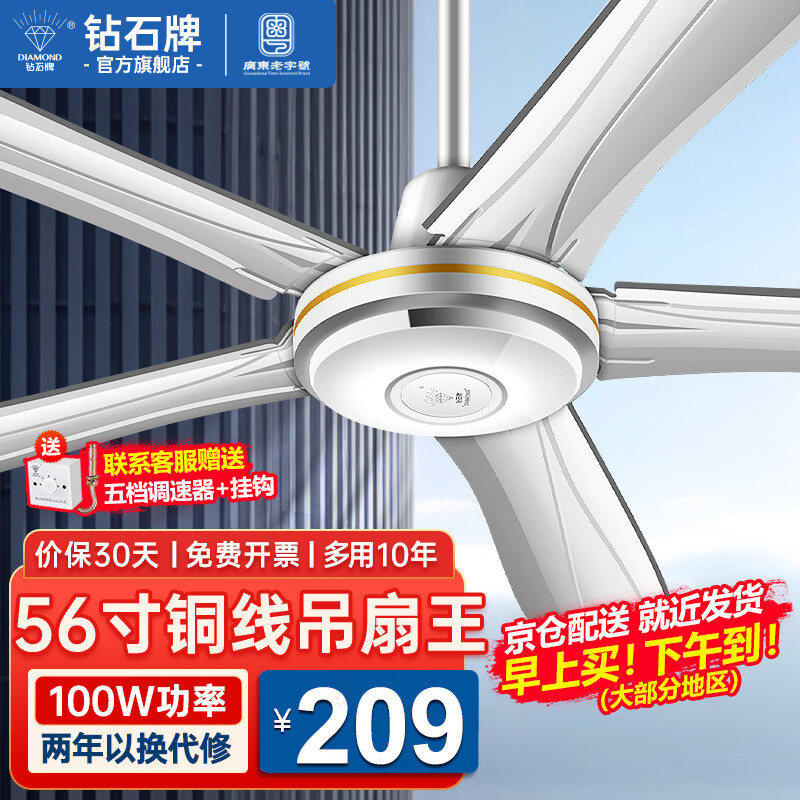 钻石牌(DIAMOND)吊扇电风扇铜芯电机铜线家用吊顶风扇56吋工业工厂车间客厅吊风扇大风力宿舍电扇 56寸五叶吊扇王(加大铜线电机)