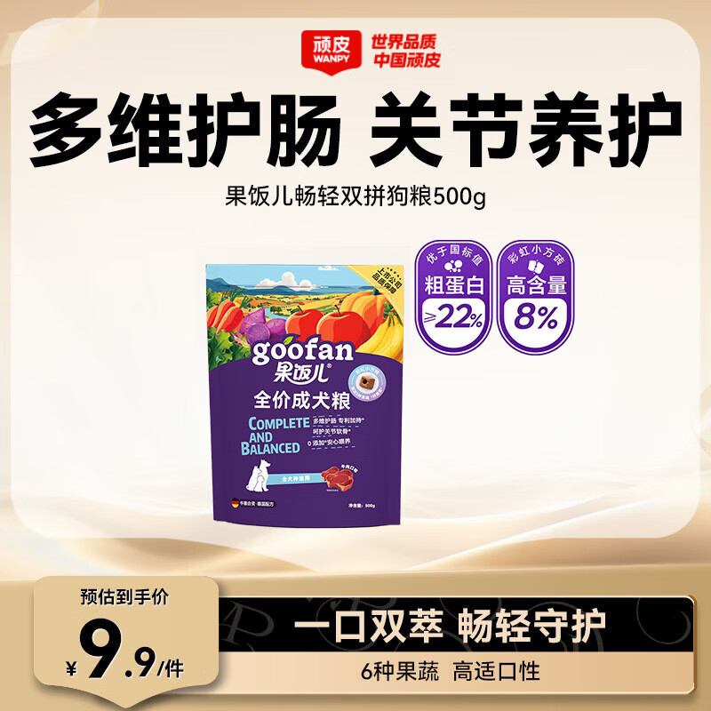 顽皮(Wanpy)果饭儿双拼犬粮添加鸡肉冻干拉布拉多比格宠物食品成犬幼犬专用 【试吃装】牛肉口味-500g