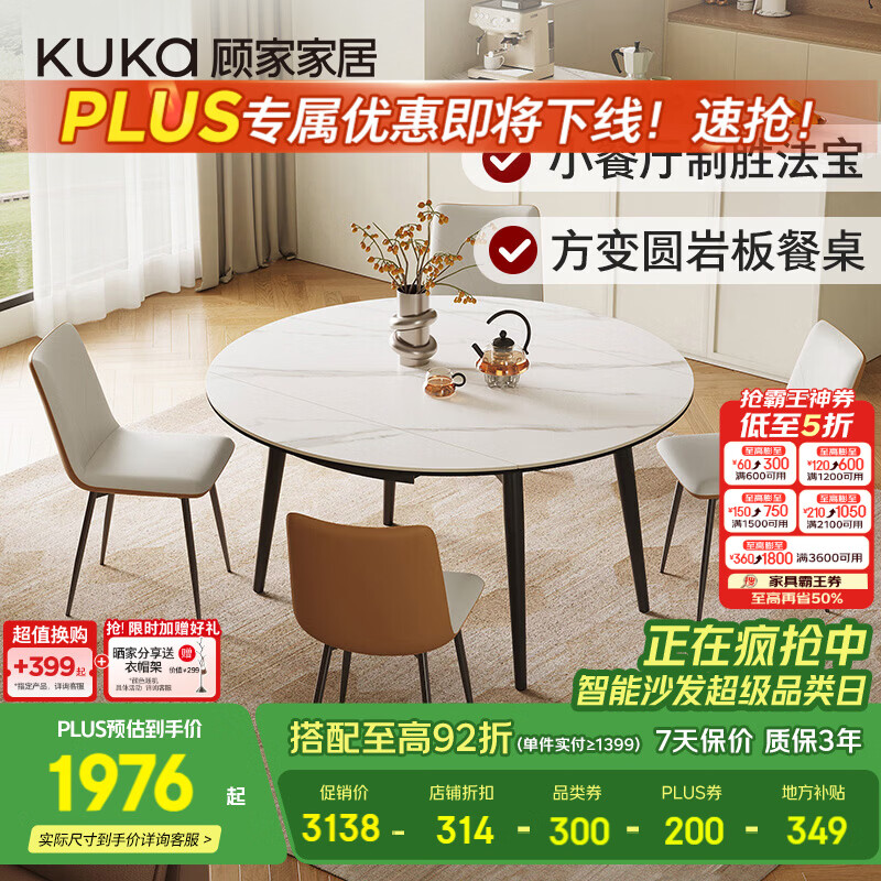 顾家家居简约岩板餐桌饭桌子家用可伸缩全托小户型餐桌椅子全套DS7209哑光 【雪山石哑光】1.35M餐台+暖贝棕椅*4