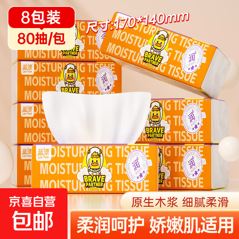 【元气小黄鸭联名】蓝漂乳霜纸保湿抽纸日常通用云柔巾 4层80抽 蓝漂 4层 80抽*8包