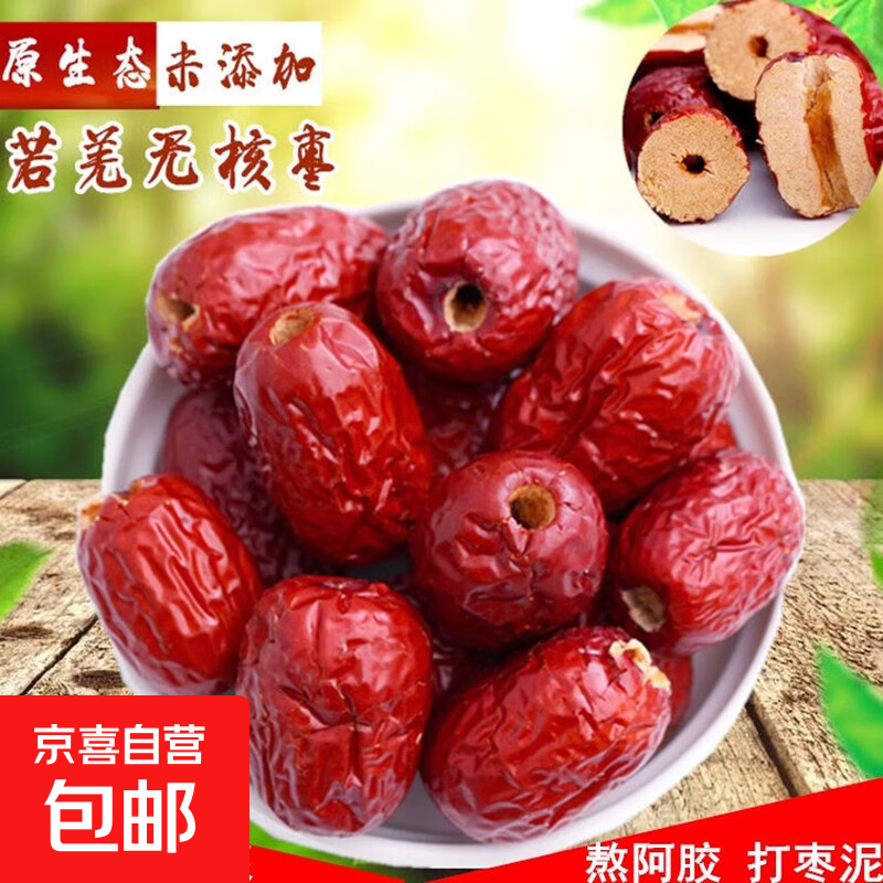 新疆无核红枣 特级 空心即食 若羌灰枣500g 去核大枣无籽煮粥零食 精选新疆无核枣(5斤装)