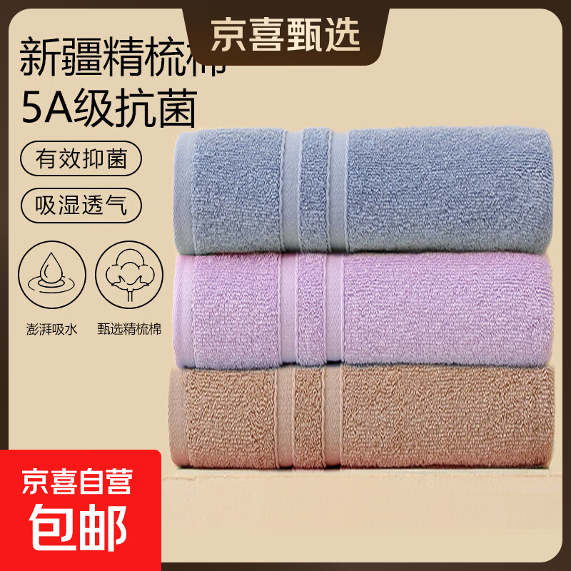 【洁丽雅同款】5A抗菌纯棉毛巾马卡龙色夏季运动毛巾情侣洗脸家用 5A抗菌面巾-蓝+紫+棕 3条