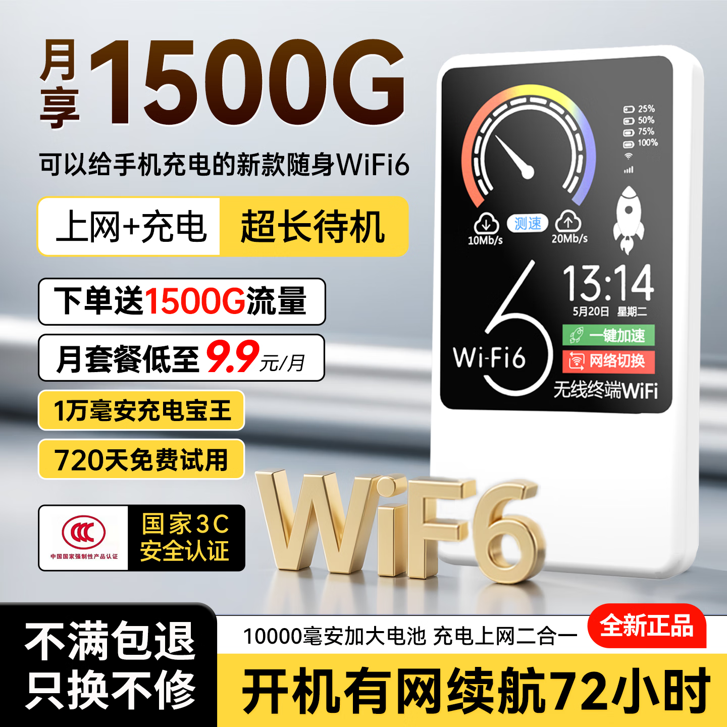 德芊【送免费流量】随身wifi2025款1W毫安5Ghz双频充电宝合一无线wi-fi6移动网络无限流量车载上网路由 全网通【光纤版】10000毫安-赠送3000G