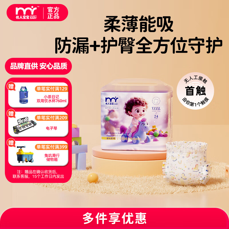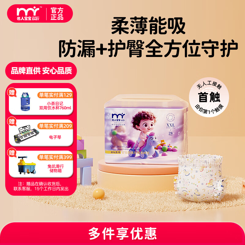 名人宝宝童玩系列尿裤婴儿拉拉裤超薄透气干爽训练裤新生儿尿不湿试用 拉拉裤XXL码28片(≥15kg)