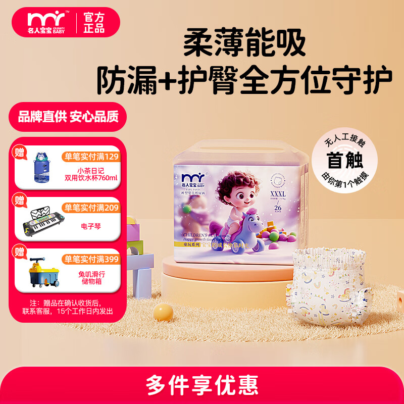 名人宝宝童玩系列尿裤婴儿拉拉裤超薄透气干爽训练裤新生儿尿不湿试用 拉拉裤XXXL码26片(≥17kg)